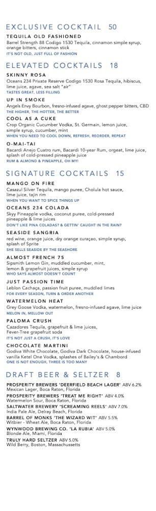 Signature Cocktails Oceans 234 Seafood Restaurant In Deerfield Beach Fl